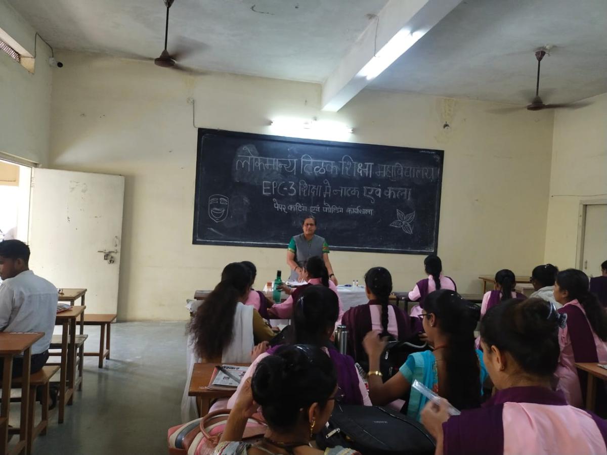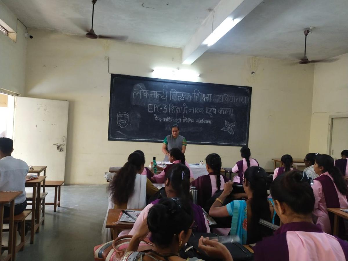दिनांक 11.04.2023 को बी.एड.द्वितीय सेमेस्टर में EPC.3 शिक्षा में ‘‘नाटक एवं कला‘‘के अंतर्गत ‘‘पेपर कटिंग एवं फोल्डिंग‘‘ की कार्यशाला का आयोजन किया गया। जिसमें डाॅ.ज्योति विजयवर्गीय द्वारा लिफाफे, पेपर बेग, तोरण आदि का निर्माण करना सिखाया गया। इस कार्यशाला में द्वितीय सेमेस्टर के प्रशिक्षणार्थी उपस्थित थे। कार्यक्रम का संचालन सहायक प्राध्यापक डाॅ.रेखा भालेराव द्वारा किया गया।